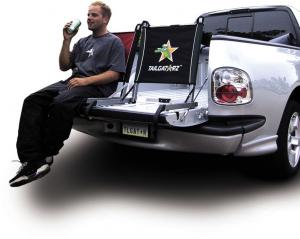 Truck Tailgate Chair - TailGatorz - Tailgate Party Lounge Chair - Mini Truckin ... - It's made from a tough weatherproof fabric and comes with it hooks up over any pickup tailgate to provide you with two comfy lounger chairs in addition to a handy insulated cooler.